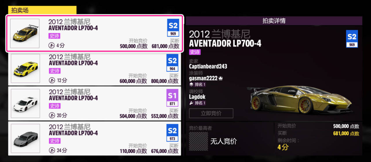 獎勵車輛爲:2012款蘭博基尼 AVENTADOR LP700-4