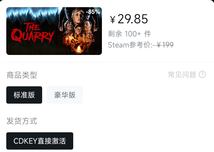《采石场惊魂》标准版29.85元,豪华版34.35元。个人觉得标准版就已经够了,因为豪华版只是多了衣服而已。