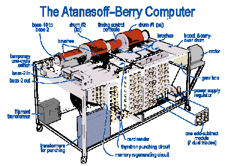 1938 年,美國科學家、愛荷華州立大學教授約翰・阿塔納索夫(John Atanasoff)和他的研究生克利福德・貝瑞(Clifford Berry)設計出能解線性代數方程的計算機。兩人分別取姓氏的第一字母 “A”“B” 與 “computer” 的首字母 “C” 進行組合,將這臺計算機命名爲 ABC(Atanasoff - Berry Computer) 。