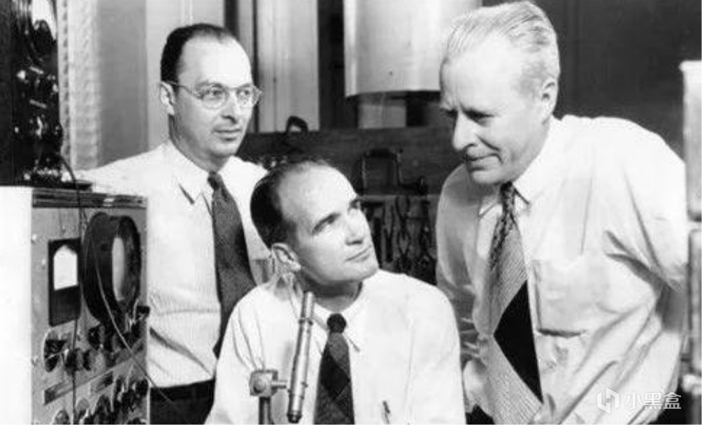 巴丁(左)、布拉頓(右)和肖克利因爲晶體管的發明,共同獲得了1956年的諾貝爾物理學獎