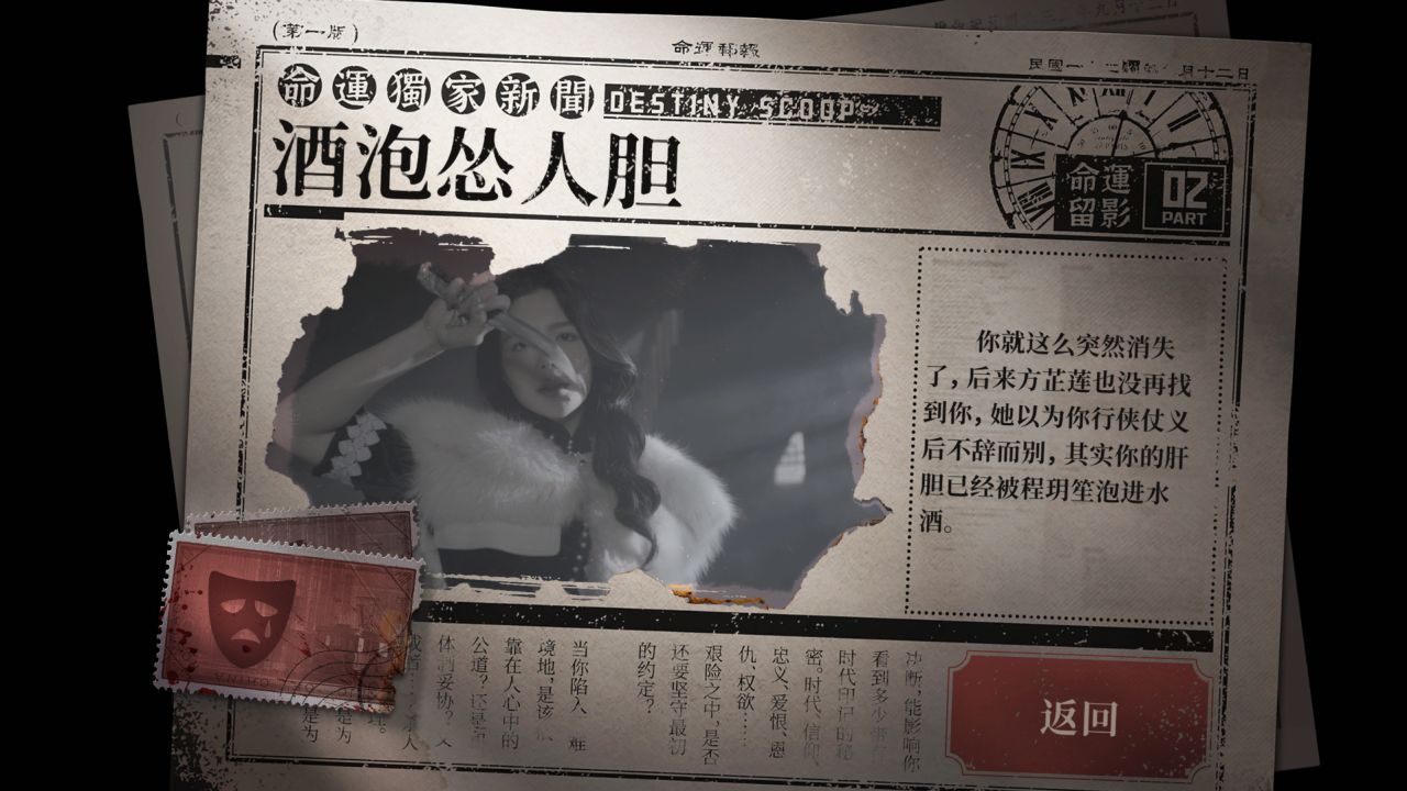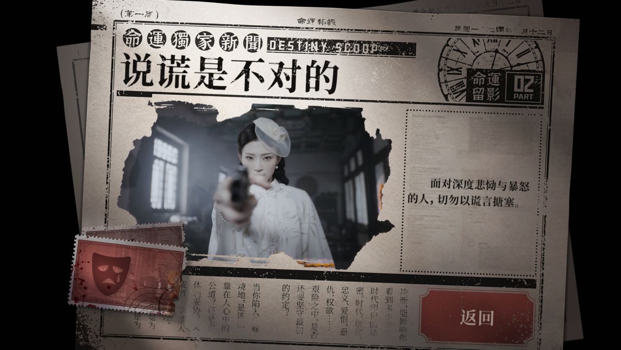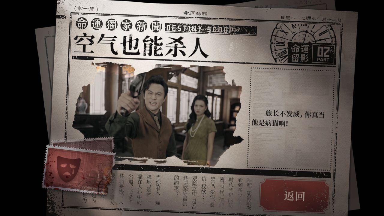 第三章:原形毕露(选择智斗陈旅长)—复仇意已决(选择这次我能帮你)—行程报备中(选择行至百乐门)—跟班纠缠小夜莺(不选择她是我未婚妻)—你为什么要帮我(选择也对哦)