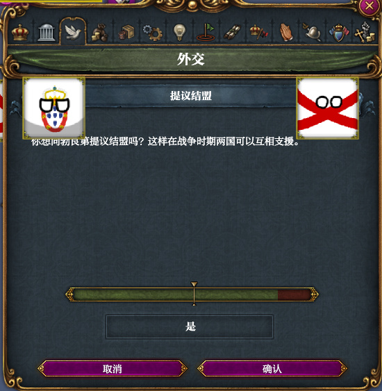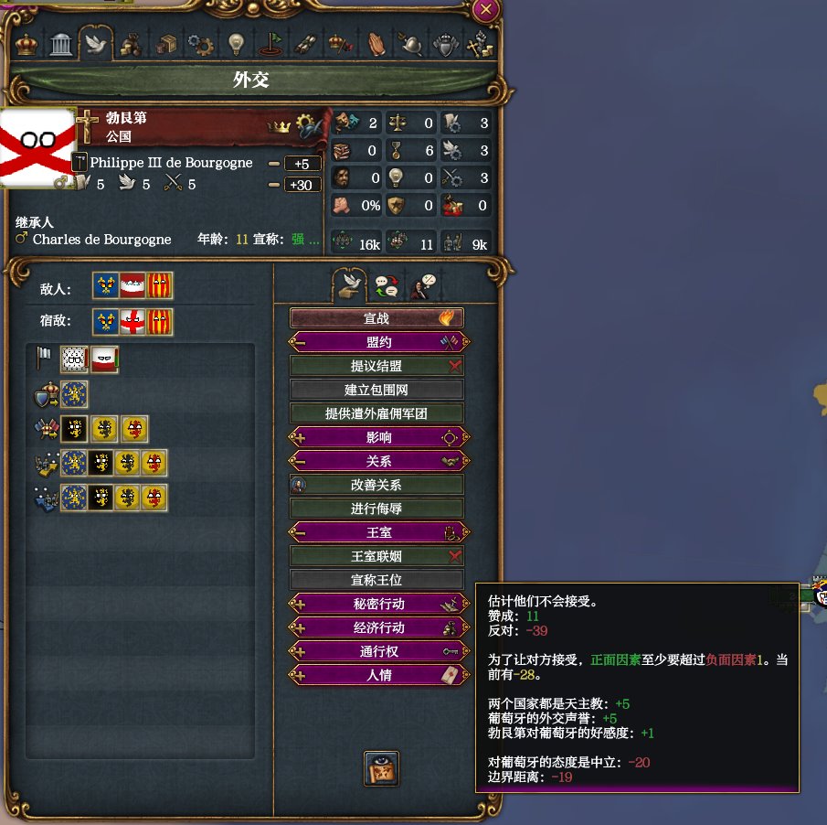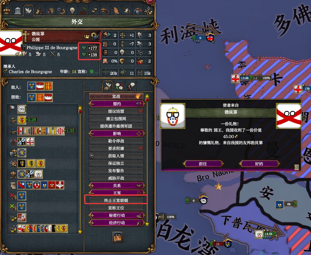 同時與勃艮第拉拉關係,由於我們實力低所以勃艮第是不會宿敵我們,拉拉關係嘗試聯姻喫裂顱。