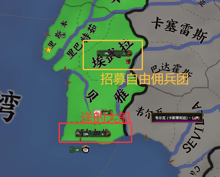 用商人特權附帶的決議白嫖大船,開局刪掉原有4隊騎兵,僱上自由傭兵團。可以完成一個任務