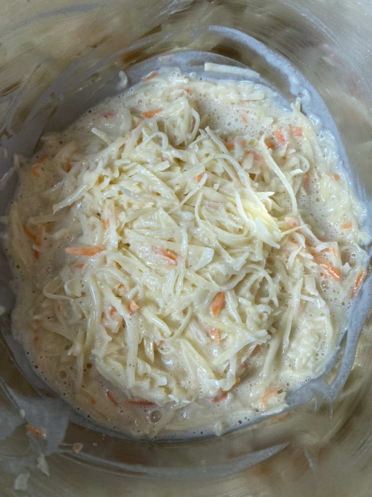 食材:土豆,胡萝卜,芝士,面粉,鸡蛋