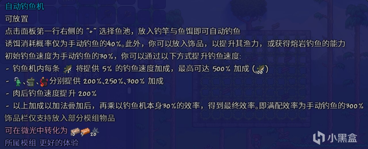 在泰拉瑞亞的衆多模組中,“更好的體驗”無疑是一個備受玩家喜愛的全能型模組,他爲遊戲帶來的諸多新的優化與功能,以至於在目前的泰拉瑞亞社區中,只要涉及到了模組推薦的部分,往往都會有他的一席之地,以至於成爲了目前TMOD玩家不可分割的模組之一。
