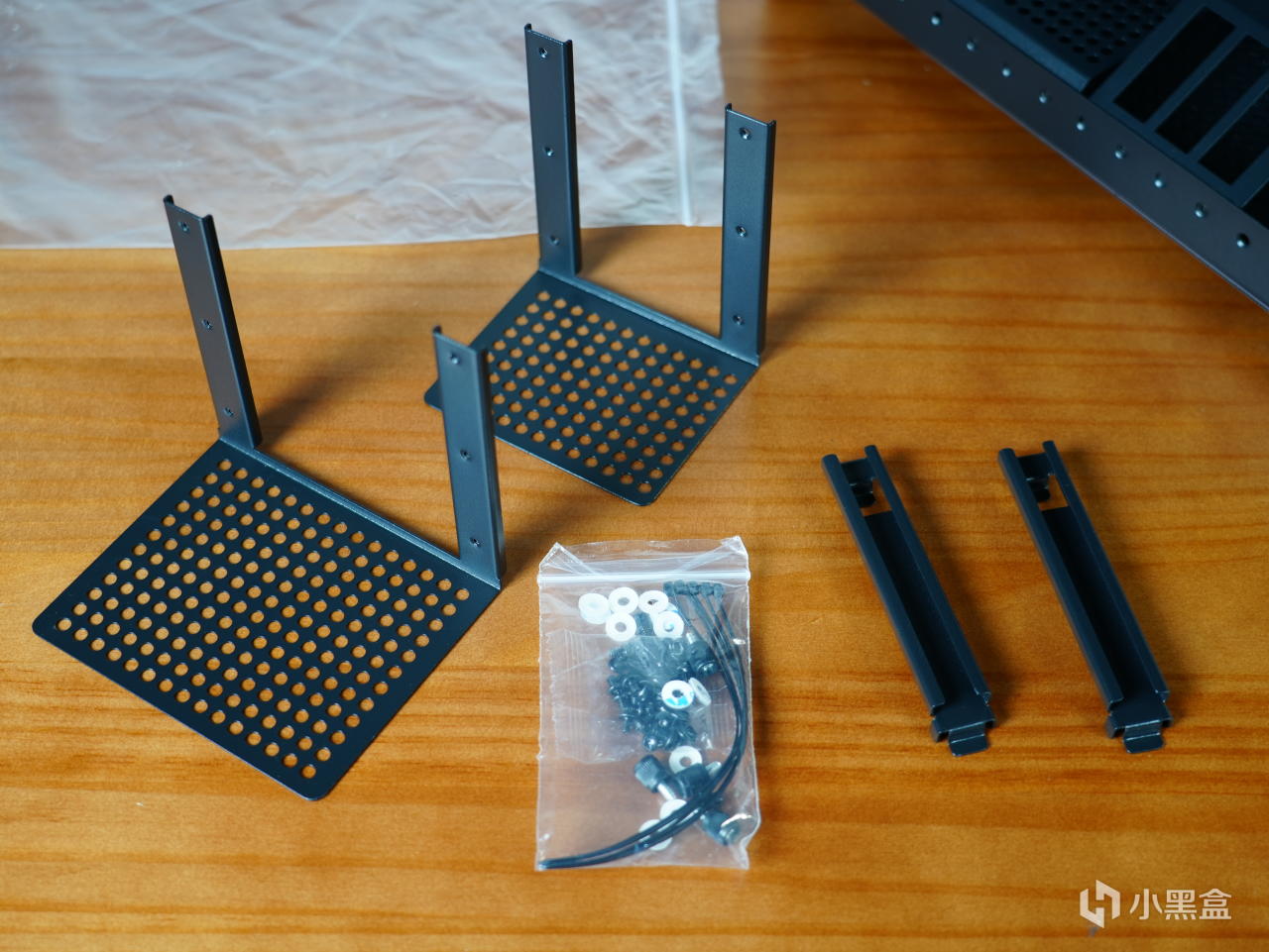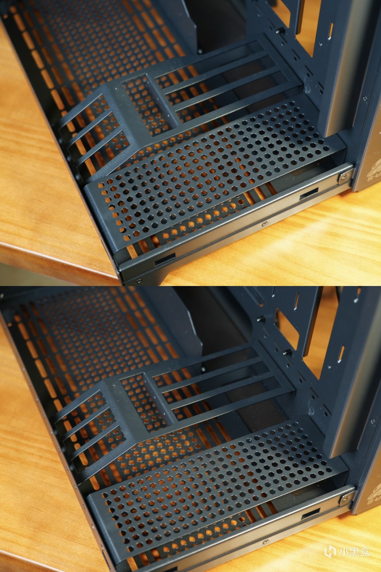 同时底部还有三块网孔板垫高地台,可隔开底部风扇,作为手办等物件的展示位。