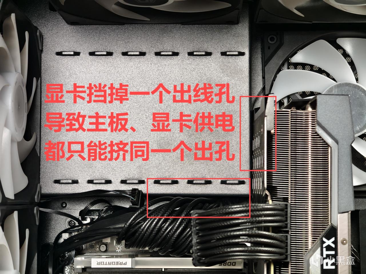 还有个问题就是当显卡在1槽时,会出现挡掉出线孔的情况。
