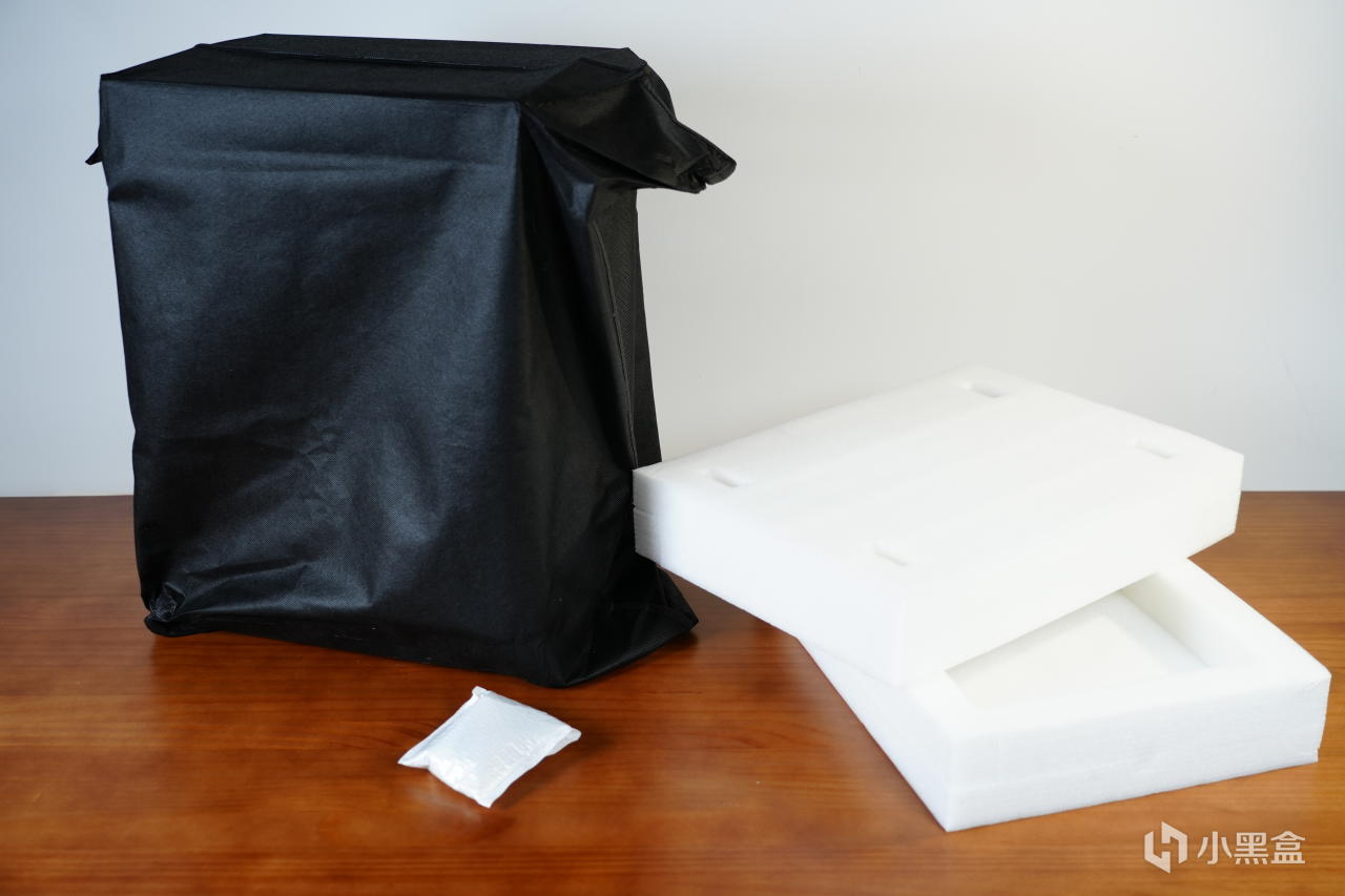 机箱内部采用黑纺布包裹机箱本体+上下厚泡沫覆盖保护,除了本体外还有个小袋子附件。