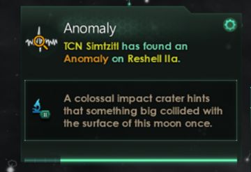 探测到异常读数! 异常 TCN Simtzitl在Reshell IIa上发现了一处异常。 • 一个巨大的撞击坑暗示曾有某种庞然大物与这颗卫星的表面相撞。 一些不怎么受欢迎的事件线,也已经或即将进行一定程度的调整。