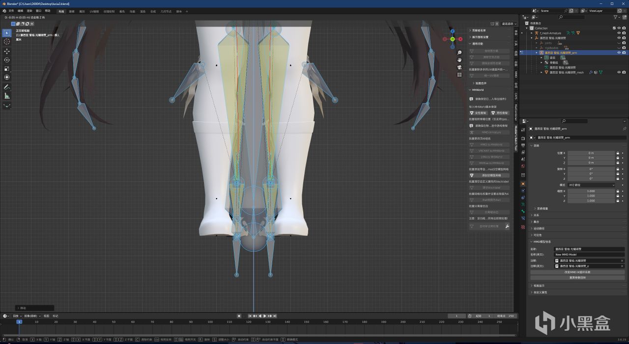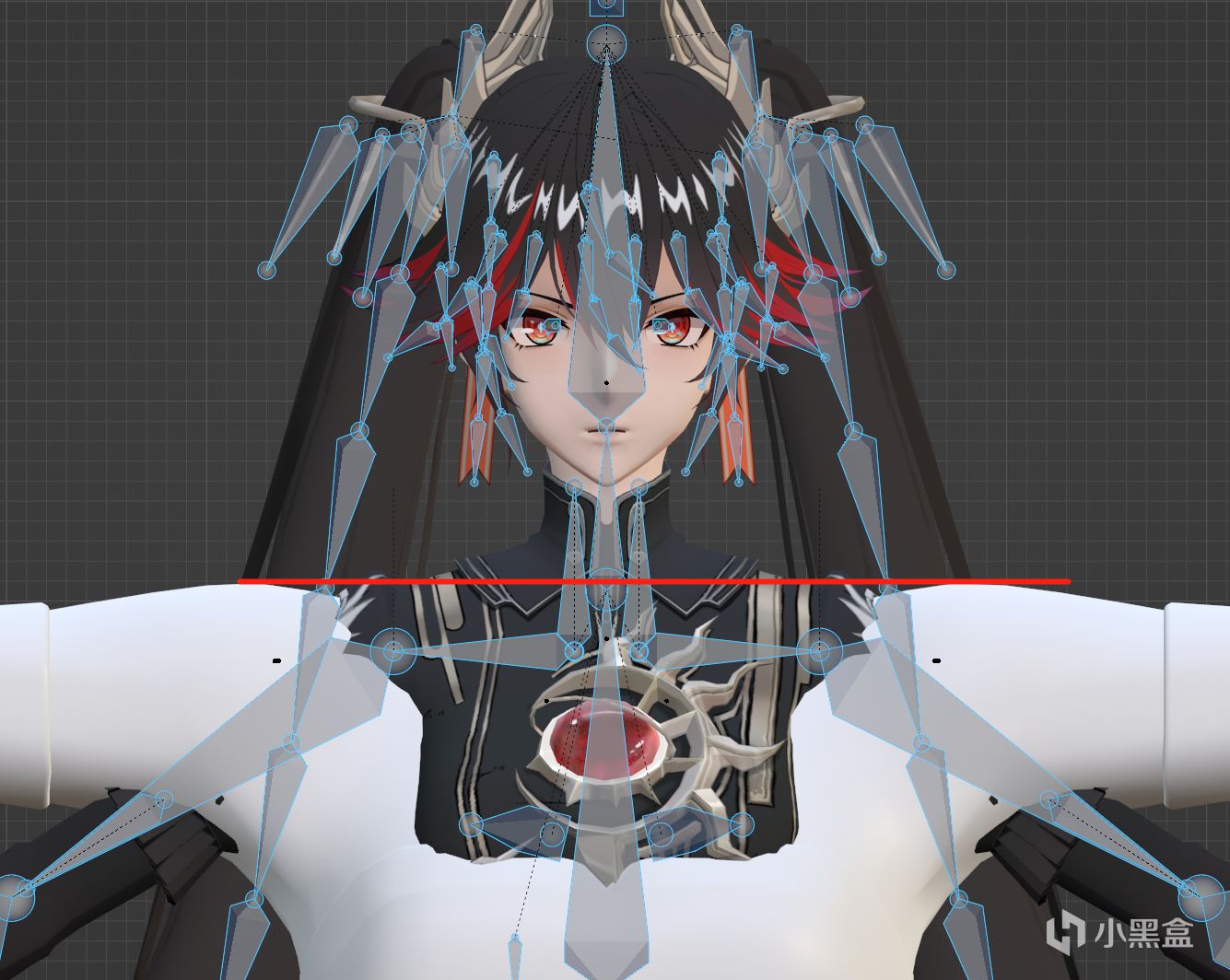 隱藏一下我們模型的骨骼,就得到了一個我們的模型+世界吸附後的骨骼定位點