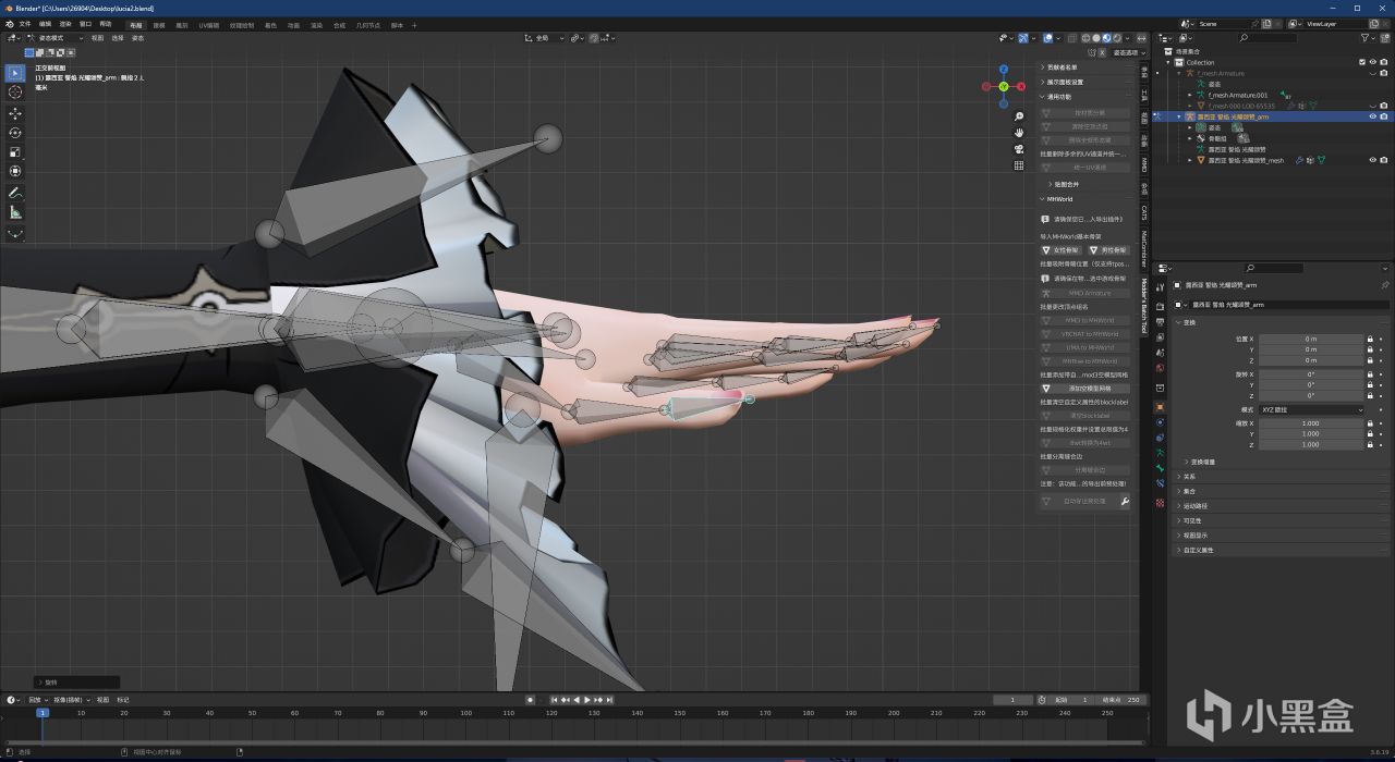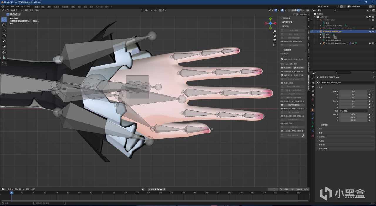 所以接下來我們要把模型骨架吸附獵人身體上,告訴MHW需要控制哪幾個頂點組。