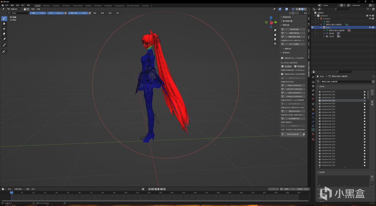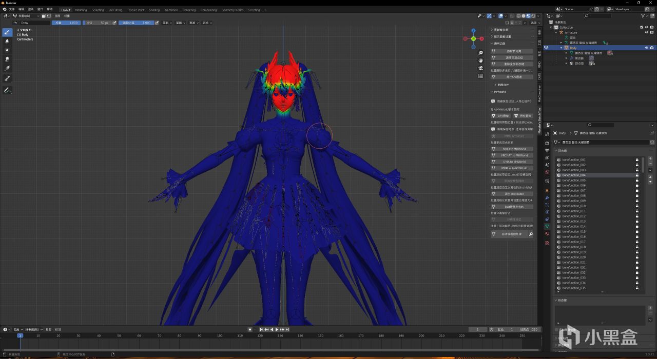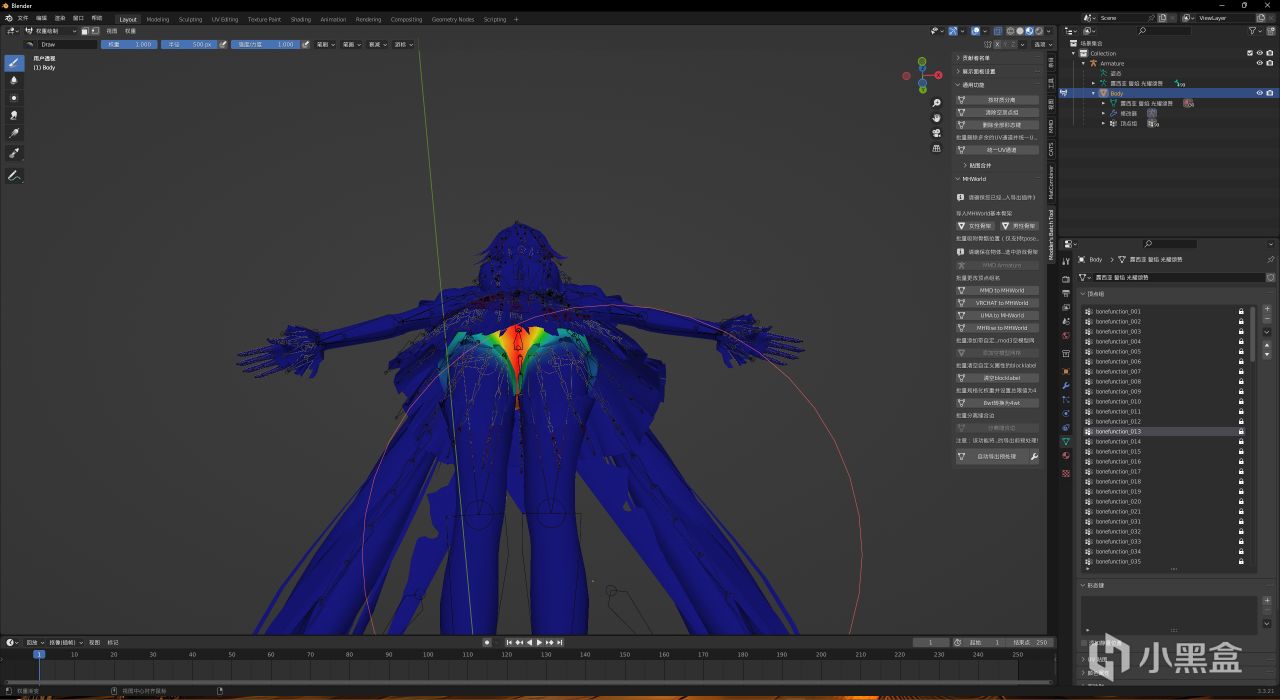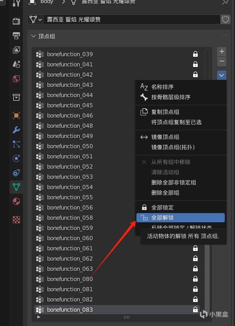 然後你可能就會發現有一些沒有被改名的頂點組,如果你模型簡單,改名後都是bonefunction_xxx形式,可以直接跳過下面內容;
