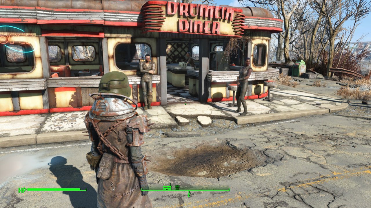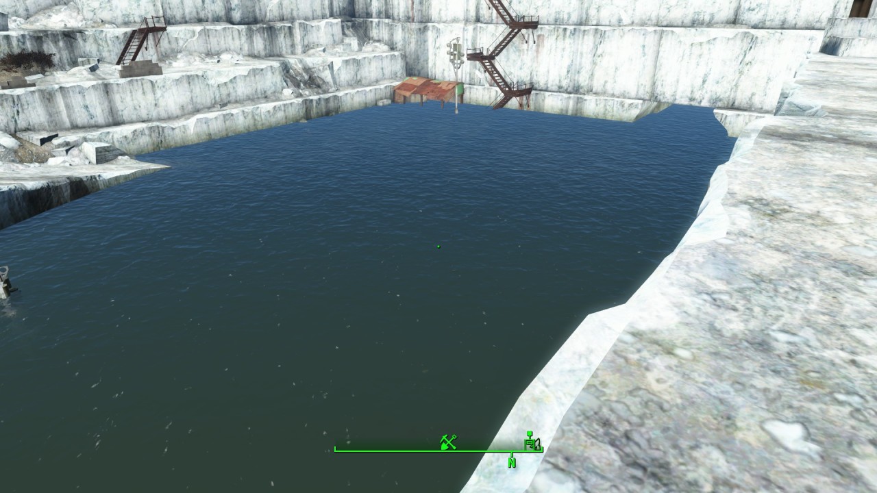 繼續向任務點進發,途中解鎖了星光休息站(等有空再建設),發現了一個全是水的採石場,有個人讓我下水修抽水泵的管道,我修好了。也不知道水會不會真的被抽完。等以後回來看看。還發現了一個垃圾處理廠,裏面有一臺鐵衛兵和一把胖子核彈?!激活鐵衛兵把所有鼴鼠都殺了!這個鐵衛兵真的好有安全感啊(忘截圖了)。對了,衛星站的西邊,有一架墜毀的飛機,機頭西邊有一套T45動力裝甲(沒截圖)。