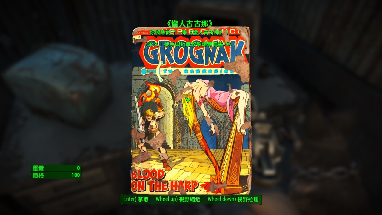 接着閒逛發現一個遊騎小屋,裏面有幾隻蒼蠅和一具女性骸骨,骸骨腳邊的行李箱裏可以找到一份“逃家女的語音記錄”大致講述了女孩出現在這個小屋的原因。小屋裏面還有一本雜誌,忘了是《蠻人古古那》還是《廢土生存指南》了。