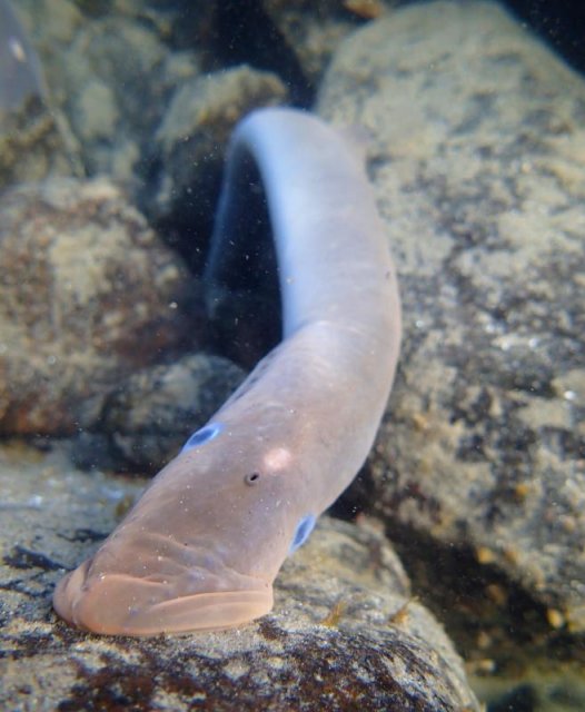 眼睛后面的身体两侧各有7个鳃孔,这也是它们被叫做“七鳃鳗”的原因。
