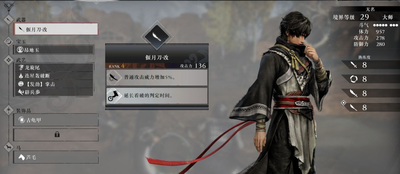 7.除了武艺(重点),轻重攻击,蓄力,重攻击派生,都需要在敌人白光状态下才能造成破甲伤害,剑的最高伤连段就是因为最后3下,虽然伤害高,但敌人在非白光状态下才打出,破不了甲,导致剑破甲差
