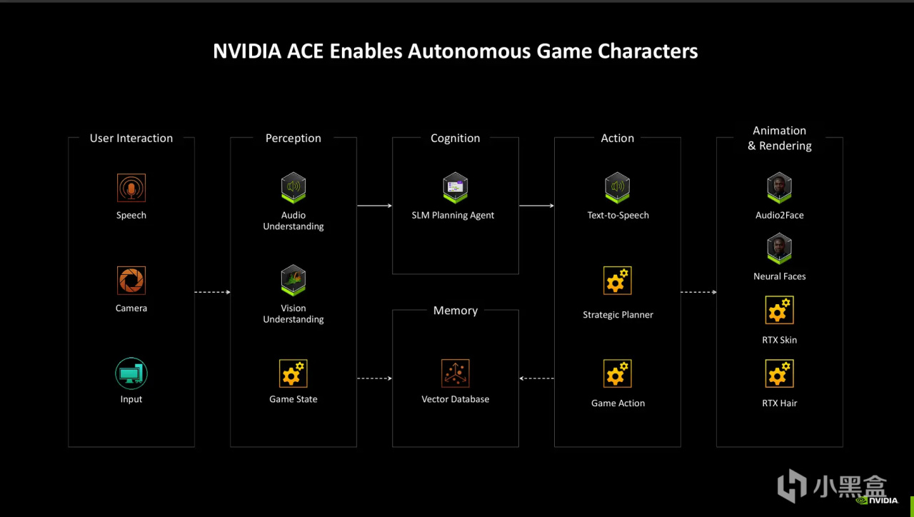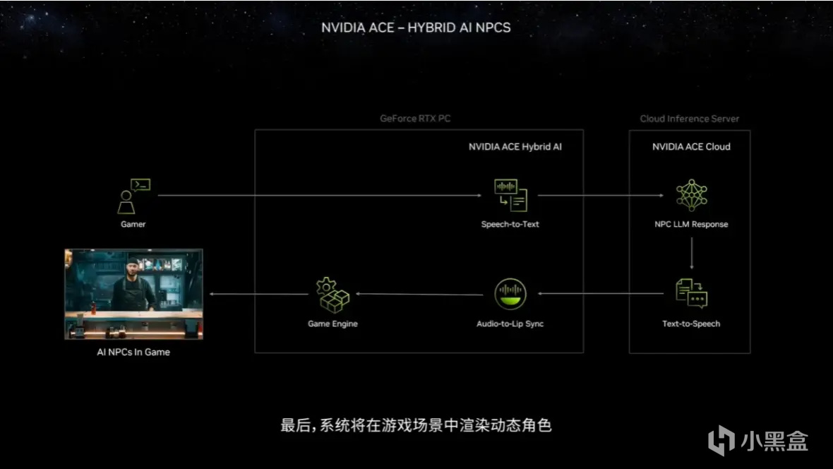 ▲NVIDIA ACE是PC端AI与云端AI同时配合的混合式AI应用,其核心目的是“赋予游戏与NPC灵魂”,让玩家的游戏体验更加真实,沉浸感更强。