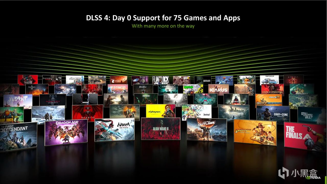 目前已确认,将有75款游戏在RTX50发售时即支持DLSS 4,这是一个极其夸张的数字。