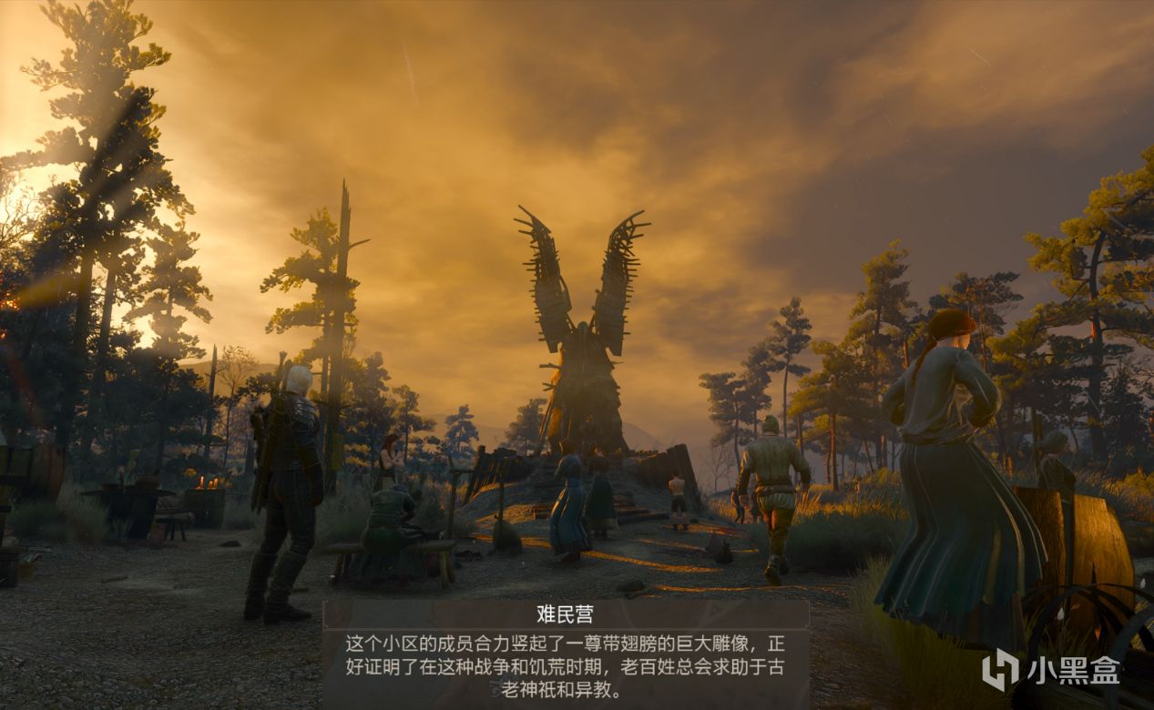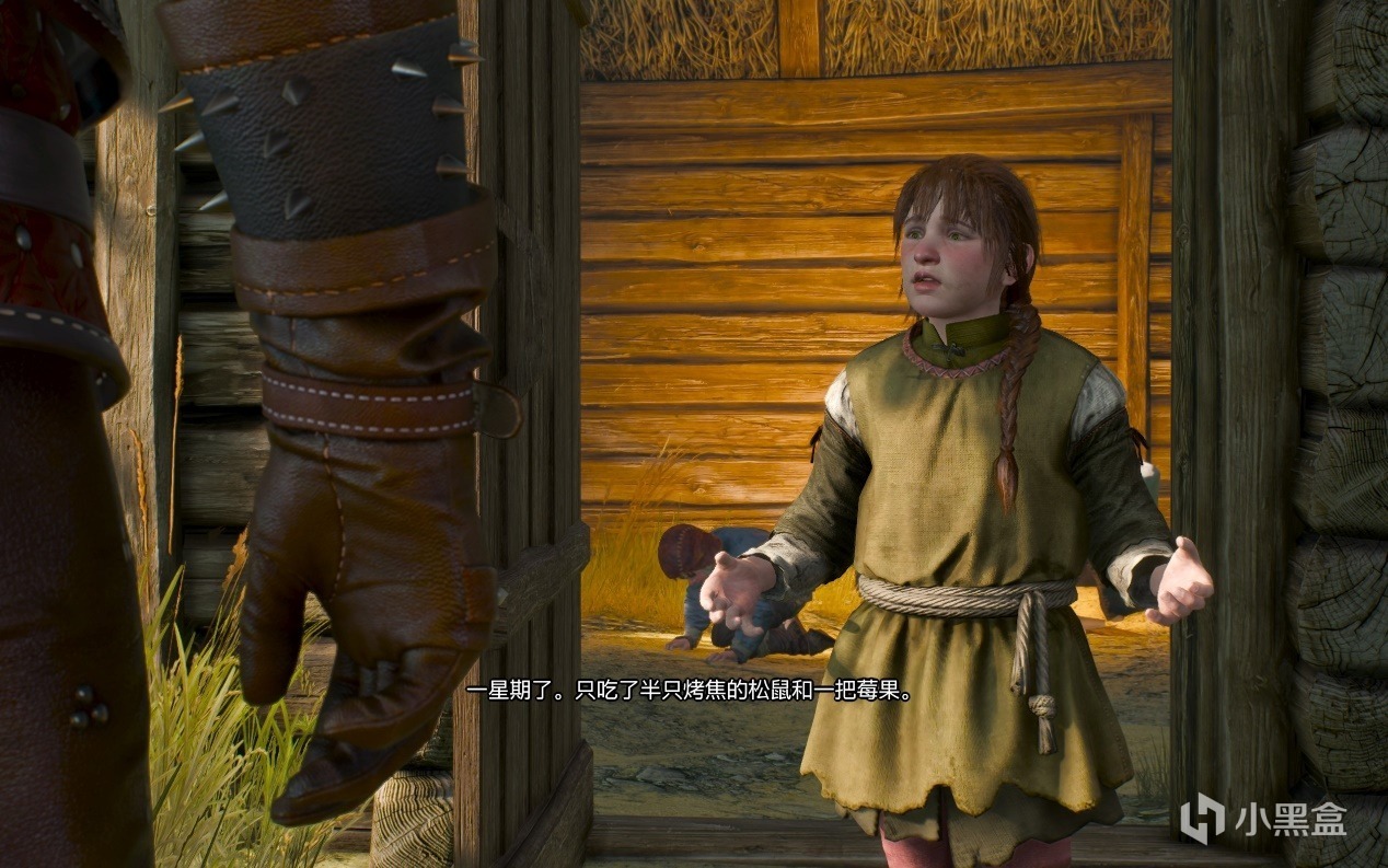 好心的獵魔人給了他們食物和錢財。孩童們難以飽腹,但也盡力地活着,他們點起火堆唱着童謠,彷彿這些苦難不曾存在。但在這樣的亂世之中,他們又能活多久呢?
