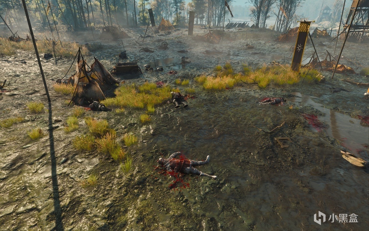 在附近的戰場上,可以見到戰後一片狼藉的戰場。鮮紅色的屍體、帳篷、武器、尼弗迦德的旗幟、貨車七零八落地鑲嵌在泥沼中。