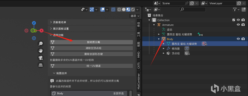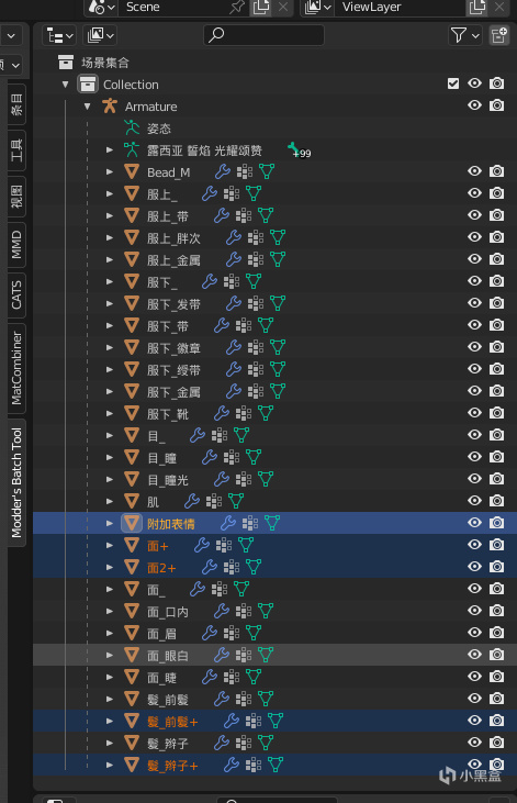 接着我們處理他的材質,從CATS中可以獲取,MBT中也可以獲取,我建議用MBT的材質合併,