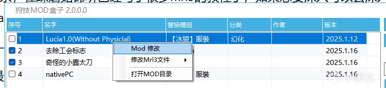 如果你要調整套裝,請先禁用之後右鍵Mod修改