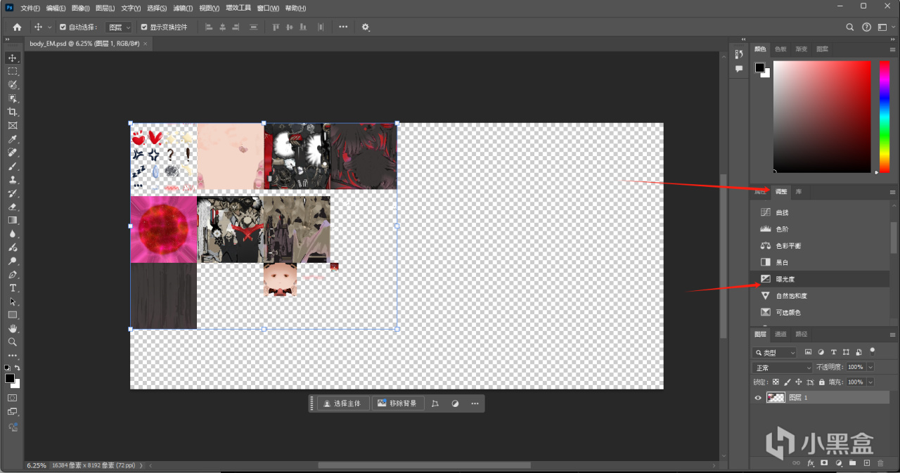 於是需要打開PS處理了,導入圖片,首先點擊右邊的調整,降低曝光度,我一般習慣是大概是-2.3的樣子,貼圖改起來比較簡單,效果不好重新做就行;