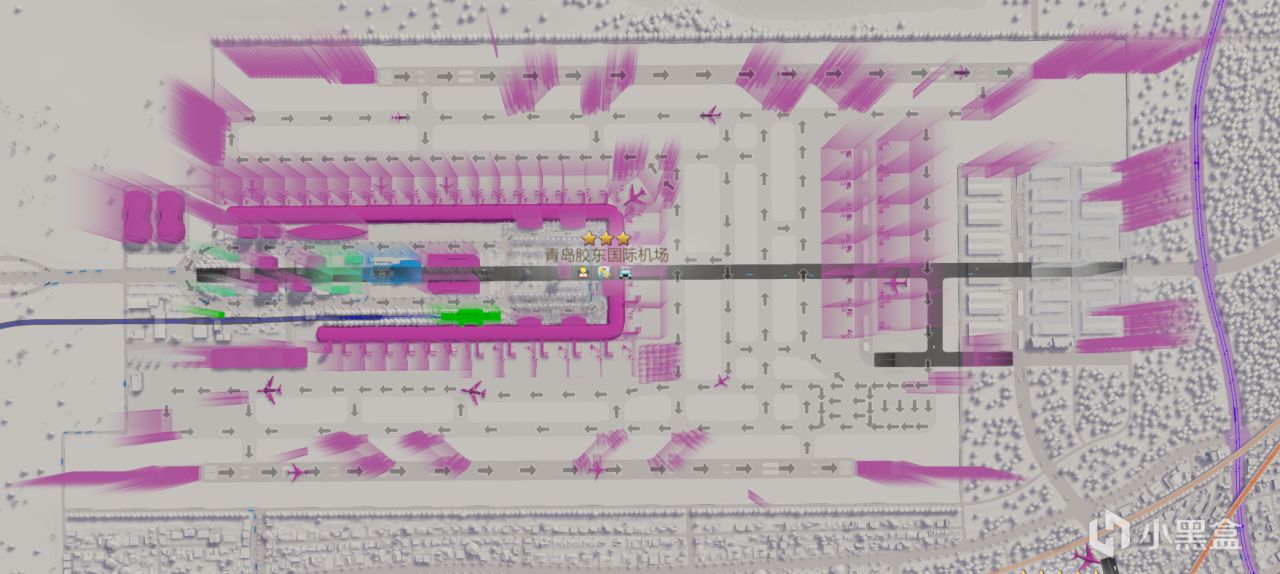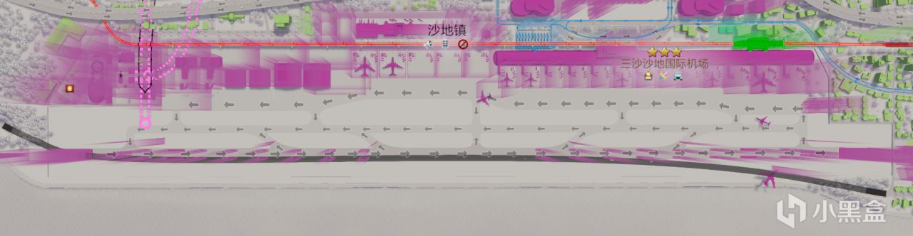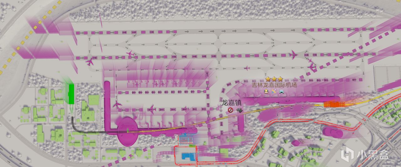 我們需要把機場跑道和滑行道的方向設置成一循環(不管是逆時針還是順時針),同時機場跑道必須有出有進,不能只有出或者只有進。機場DLC的跑道只有兩個和滑行道的接口,設置方向起來比較簡單。