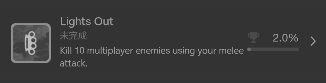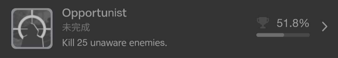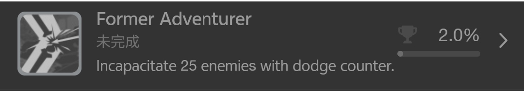 使用闪避反击使25个人瘫痪(闪避反击需要在营地学习技能,敌人肉搏攻击时,shift闪避,出提示后按F反击,用箭刺膝盖。要对25名不同敌人施展。不要学到最高级的反击杀敌。)