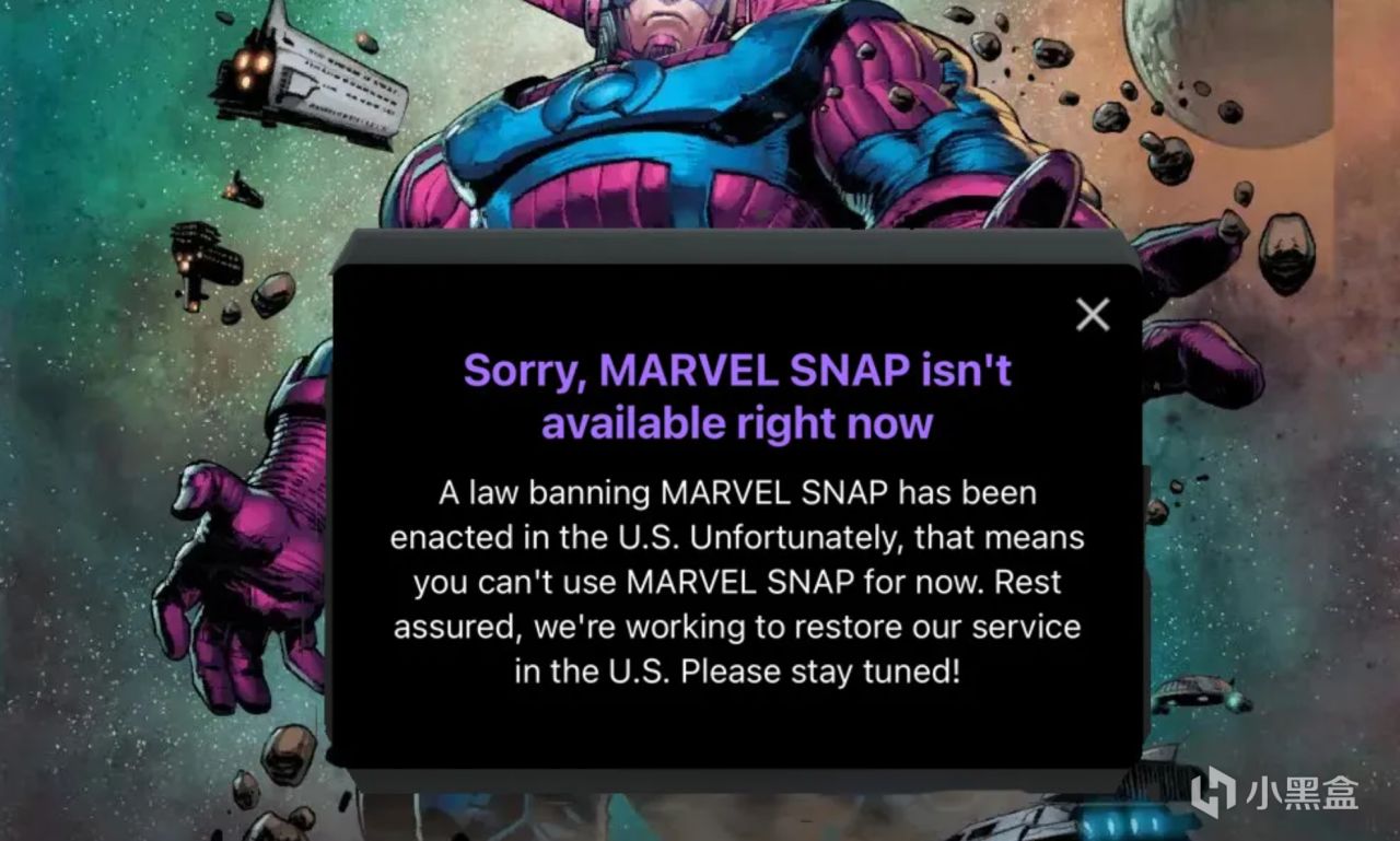 就在今天,Tiktok在美国正式下线,目前只要是在美国访问TikTok的用户都会受到一条消息,提示他们目前无法使用该应用,IGN证实目前美国境内的 Marvel Snap 玩家也收到了同样的通知,当玩家打开应用时,系统会自动显示,“抱歉,Marvel Snap 目前无法使用,因为美国已颁布禁止 Marvel Snap 的法令。”