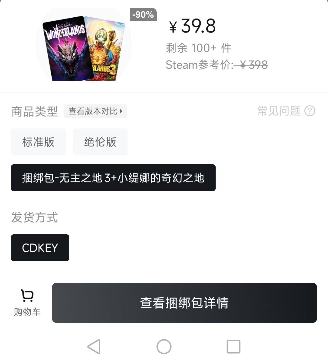 相当于买《小缇娜的奇幻之地》标准版白送一个《无主之地3》标准版!