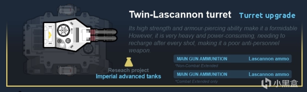 鐳射炮具有高強度和極強的穿甲能力,使其成爲一款可怕的武器。然而,它非常沉重且耗能巨大,每次射擊後都需要充能,這使其不適合作爲反人員武器。
