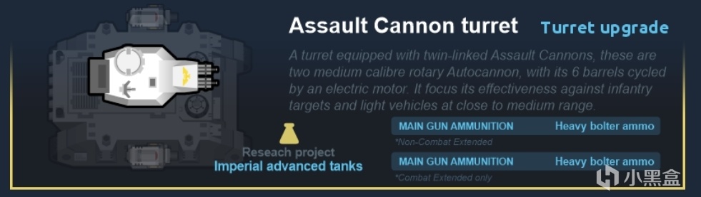 配備雙聯突襲加農炮的炮塔,這些是兩門中口徑旋轉自動加農炮,其6根炮管由電動機驅動。此炮塔主要針對步兵和輕型載具,在近中距離內具有高效打擊能力。