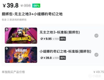 现在,购买《无主之地3》和《小缇娜的奇幻之地》两款游戏,玩家还可享受折上折的优惠,仅需39.8元即可将两款游戏一网打尽,相当于《无主之地3》几乎免费!