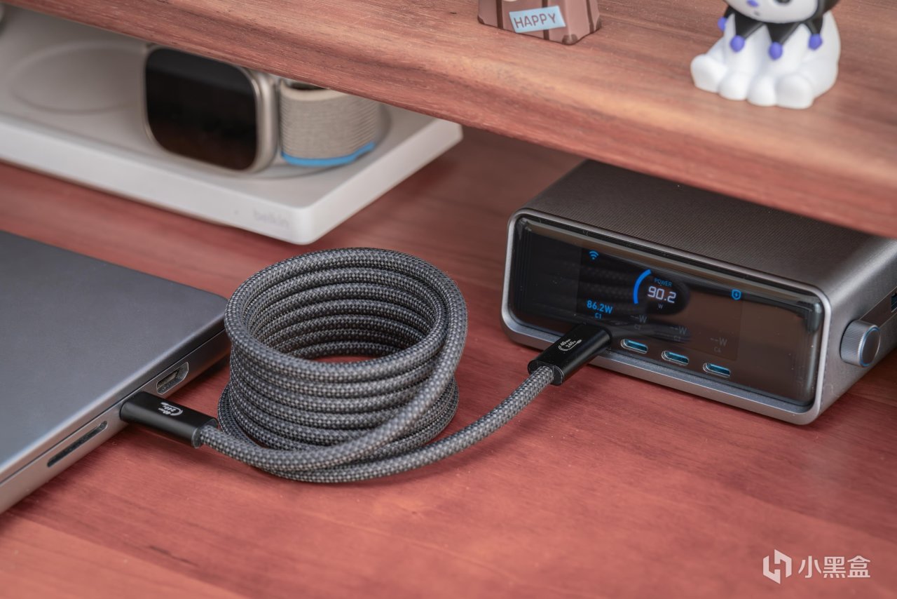 而且這根 ScapePhoton 雷電 4 數據線支持 PD 3.1 快充協議,最高功率可以達到 240W 輸入輸出功率,非常適合 MacBook 這種大功率設備。
