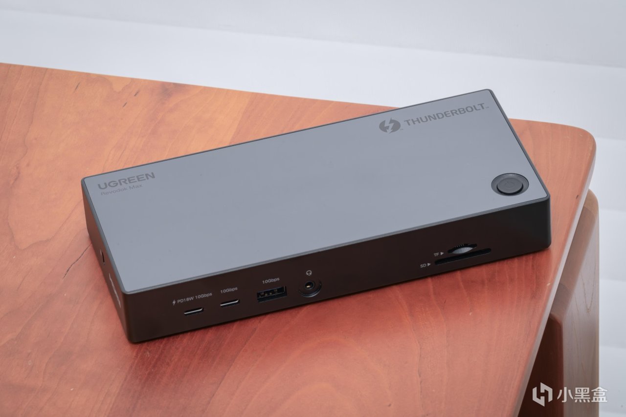 可以看到前面的數據端口是兩個 USB-C(10Gbps),還有一個 USB-A(5Gbps),同時還有一個 3.5mm 的耳機孔、SD & TF 讀卡器,利好經常需要導入照片視頻素材的內容創作者,值得好評。