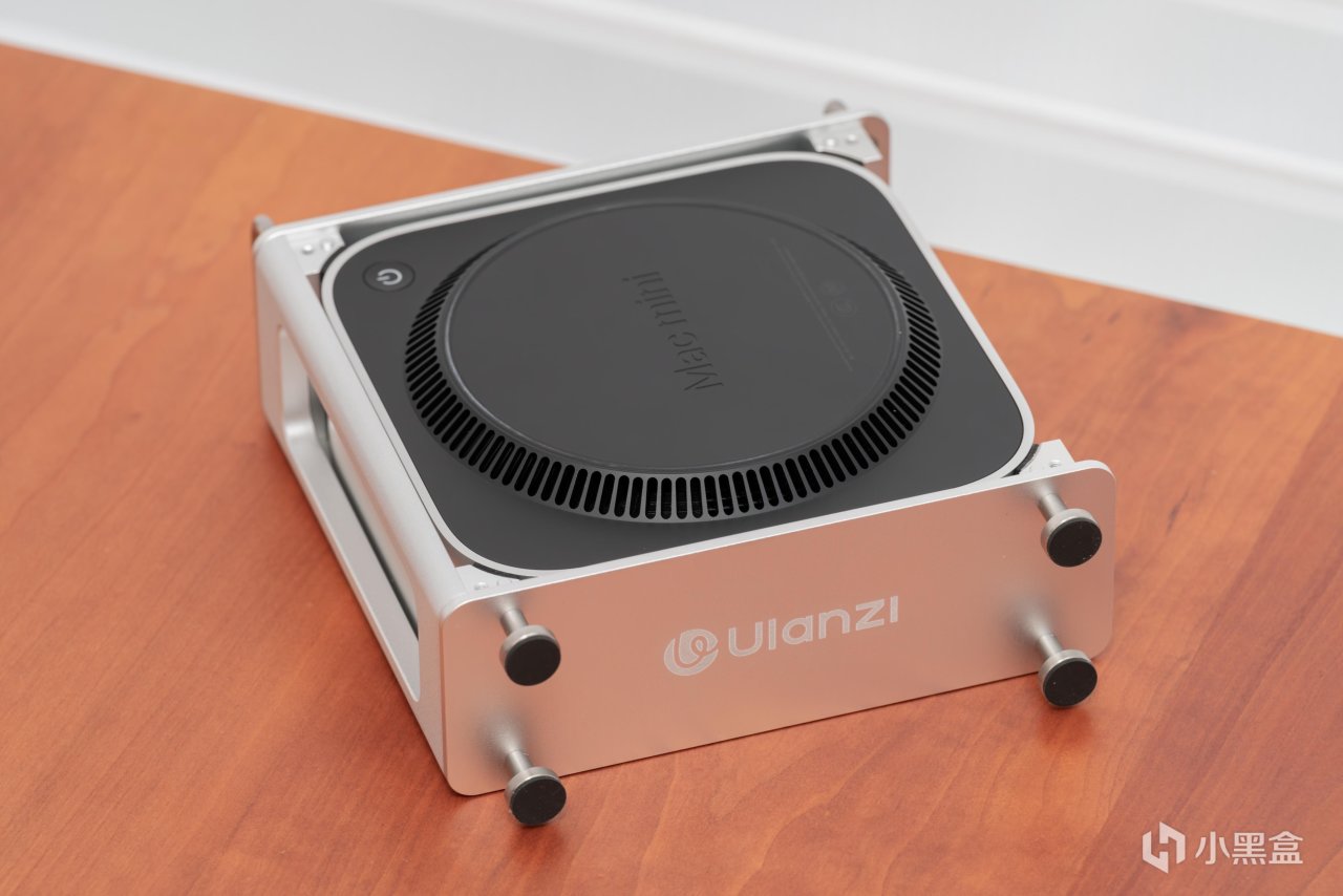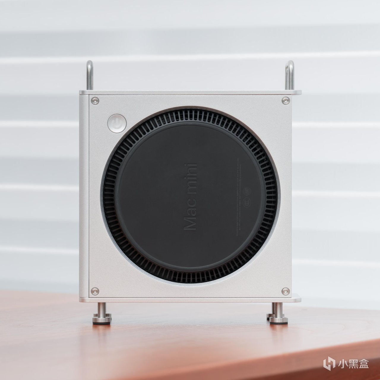 而且 Macmini 的自帶電源鍵,位於內側底部,真的太反人類了。現在可以把它豎起來,通過鋁合金主機保護殼上的按鍵就能輕鬆開機。