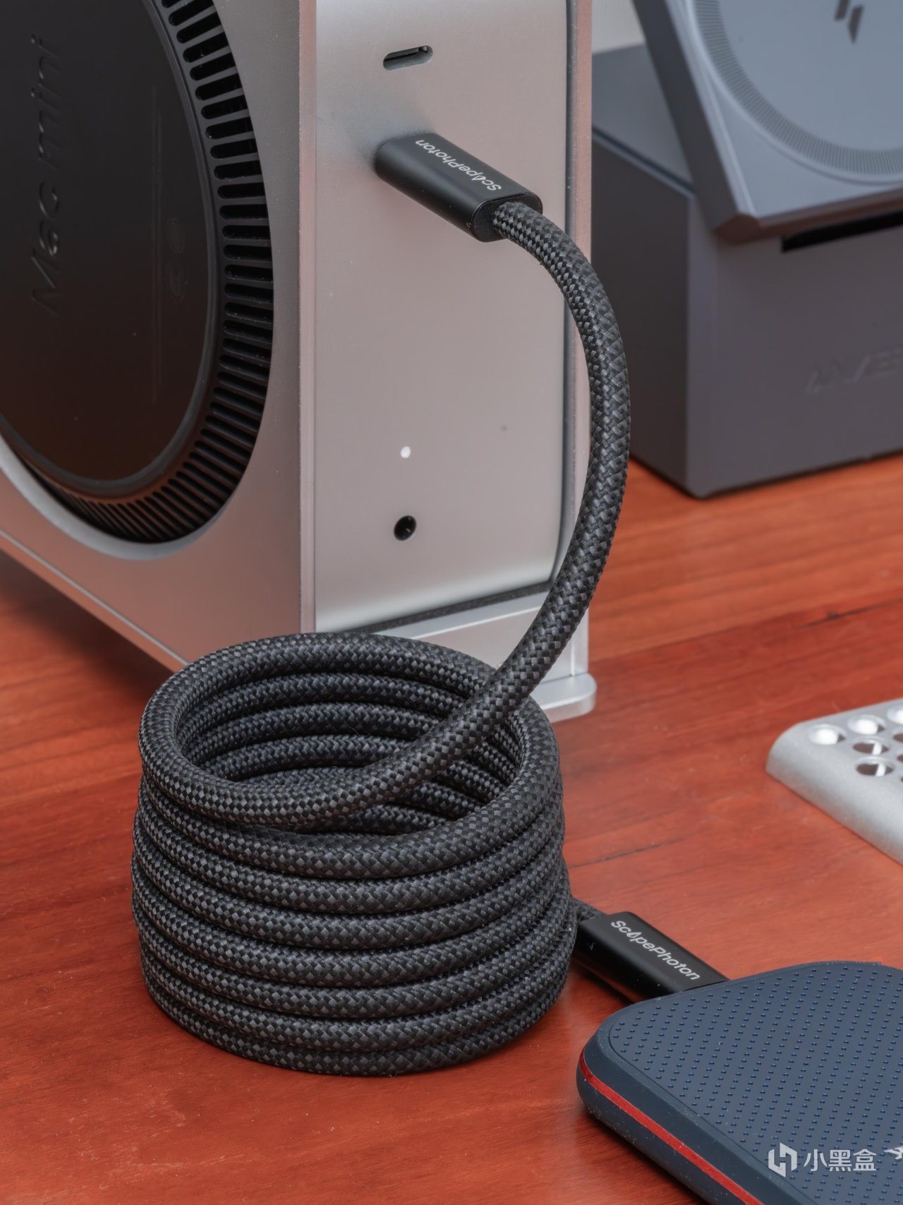 作爲一款雷電 4 數據線,ScapePhoton 自然是 Macmini M4 的好幫手,一方面是它可以完美適配 40Gbps 的端口性能,1.5 米的線長也很夠用。