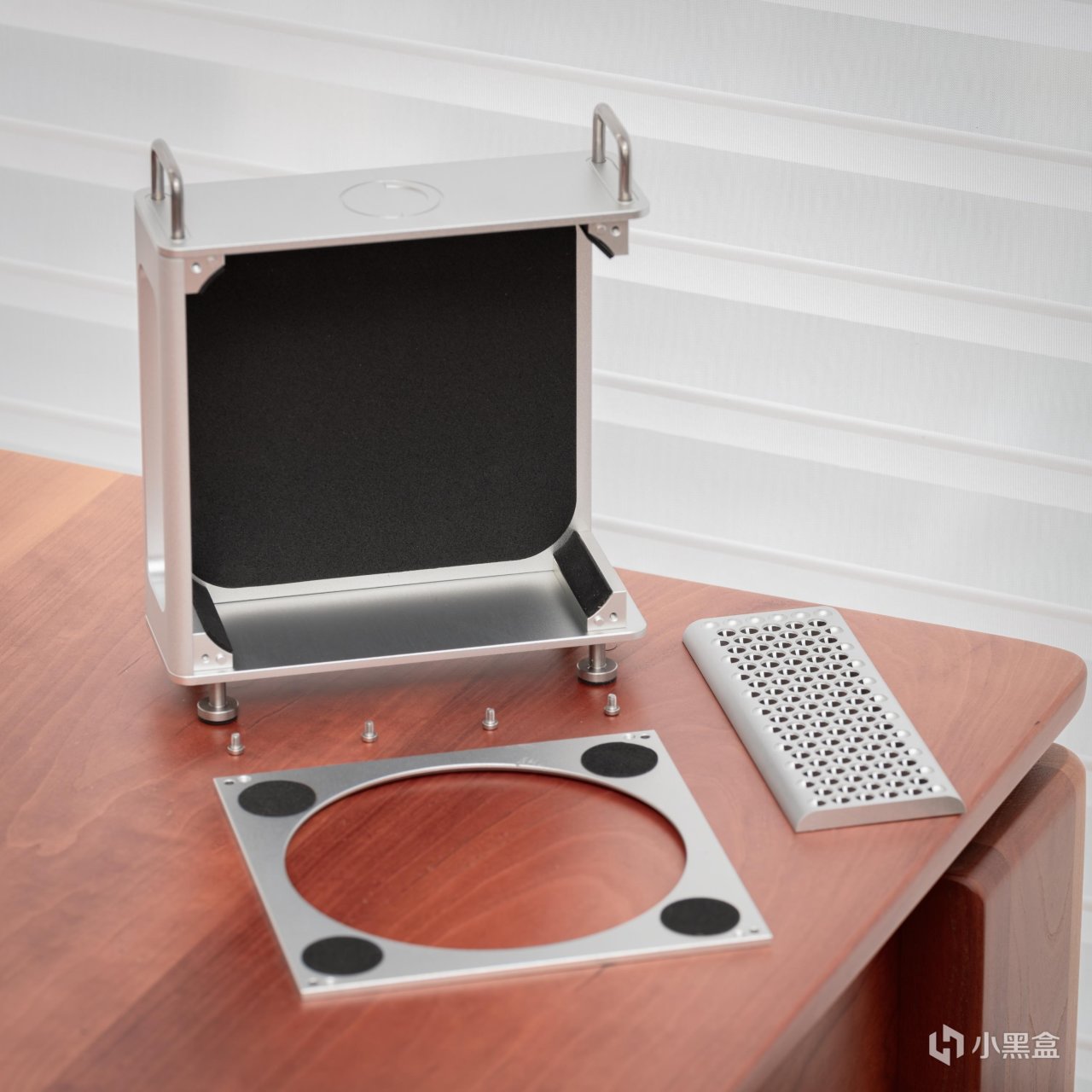 安裝的時候,通過附贈的螺絲刀擰下側面的 4 顆梅花螺絲後,將 Macmini 就可以穩固的卡入其中,內側的黑色泡沫襯墊也可以防止主機被劃傷,最後合上蓋板擰緊螺絲就好了。