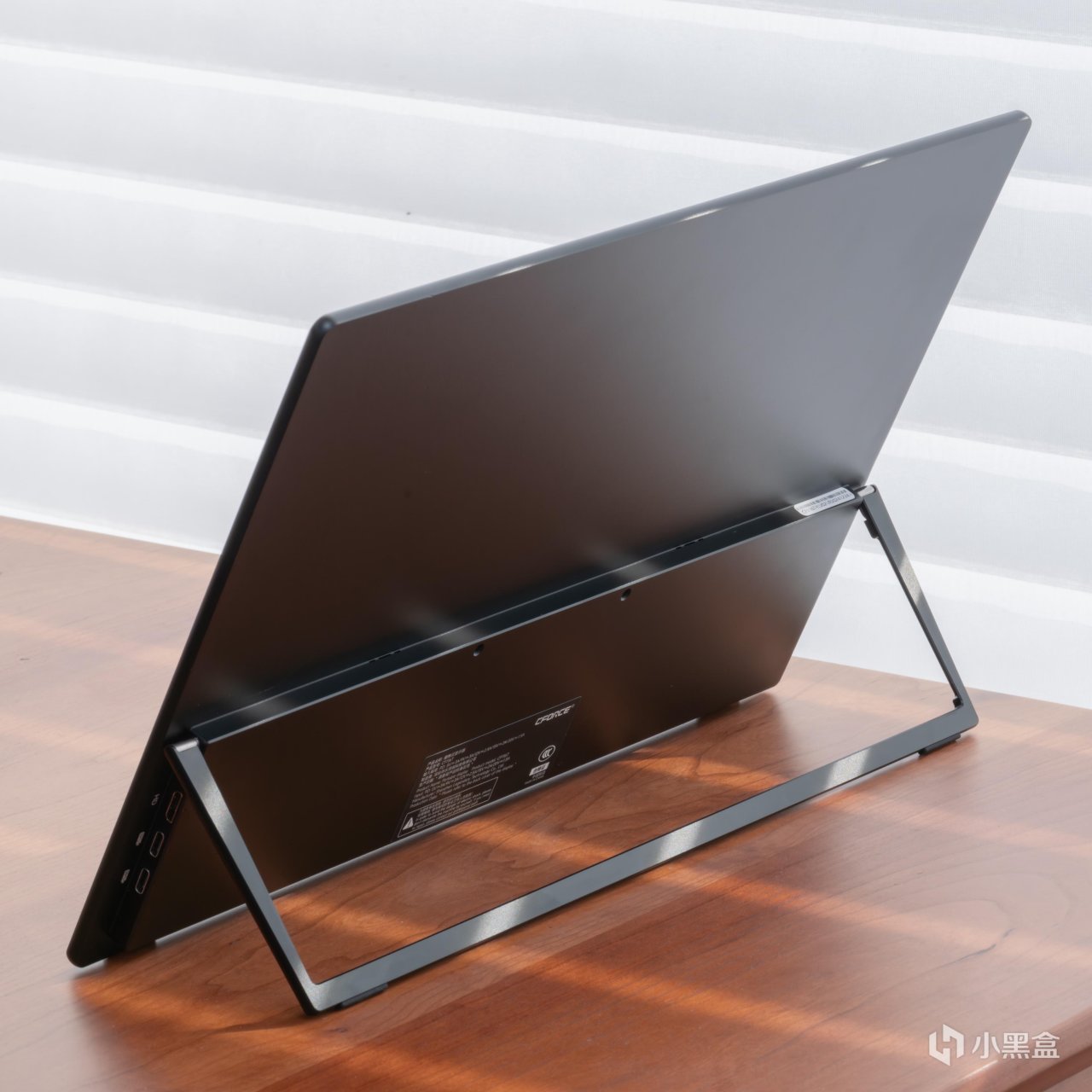 更重要的是新旗艦加入了轉軸一體支架,而且支持自由懸停,相比於前代還需要保護套支撐的方案,更加的輕便和優雅了,官方也提供了一個灰色的 16 吋收納包。便攜屏的背面還新增了一個 75mm×75mm 的壁掛孔,方便有顯示器支架用戶可以實現壁掛方案。