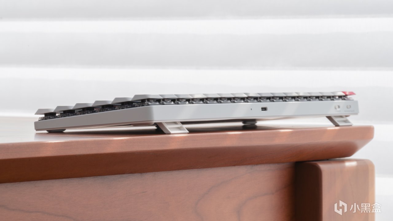 同時鍵盤爲矮軸方案,機身最薄處僅有 17mm 厚,相當的輕薄。所以如此的設計,就讓 K3 Max 的便攜屬性直接拉滿。而且鍵盤的中框還採用了陽極鋁框設計,不管是結構的剛度還是美觀性都有很保障。