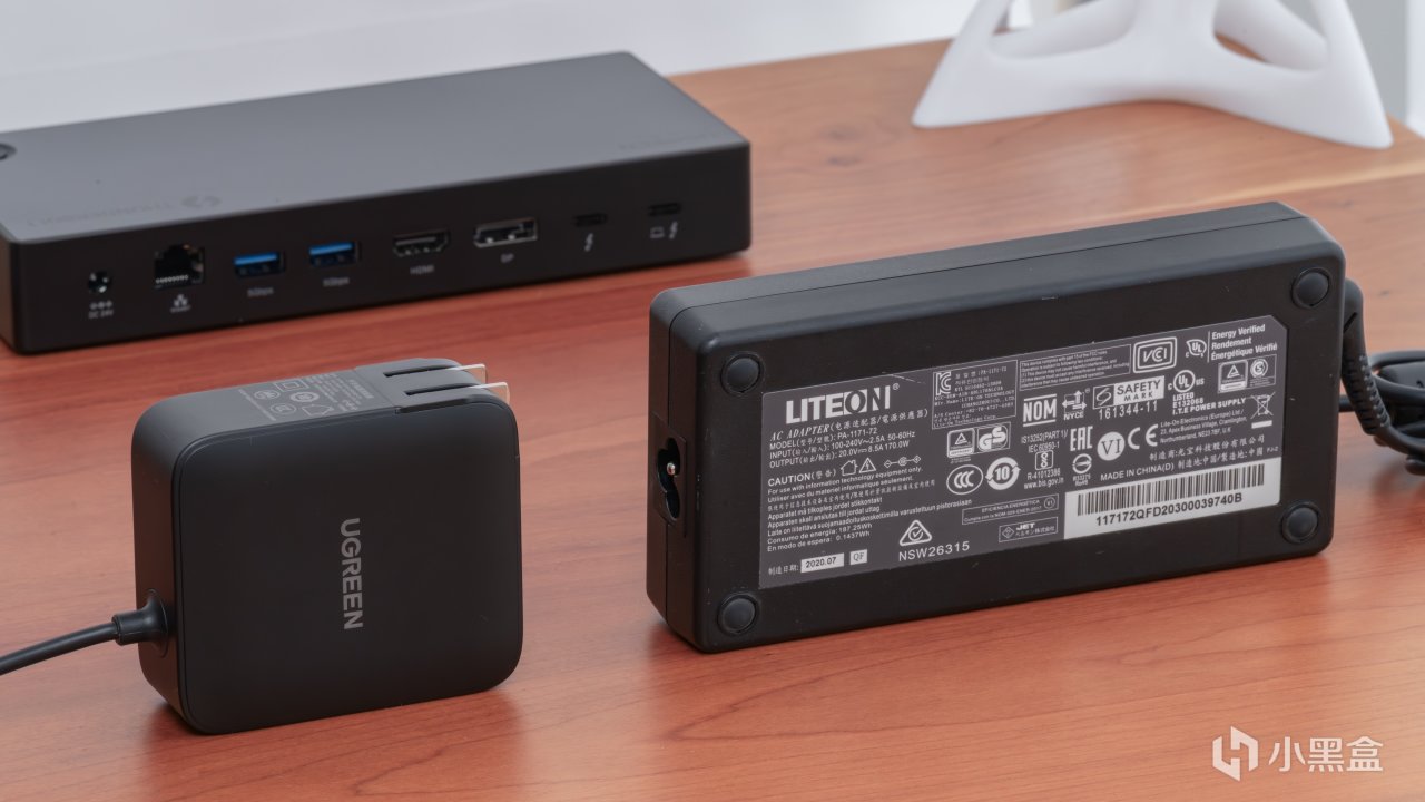 在雷電 4 拓展塢的供電方案上,綠聯也是很有想法,之前的同類拓展塢普遍是要配個板磚(電源適配器)。現在僅需一個 140W 的 GaN 充電器,尺寸只有原來的 1/3,重量也銳減了,更加省心 。