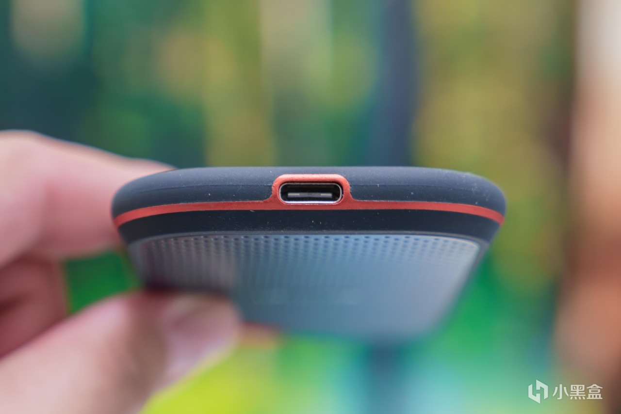 硬盤的中框是鋁合金外殼,可以在移動固態硬盤遭受衝擊時穩固結構並可以提升散熱效率。鋁合金材質覆蓋中框,延伸到了USB-C的接口處,也能夠在一定程度上對於硬盤的線纜插拔起到保護作用。