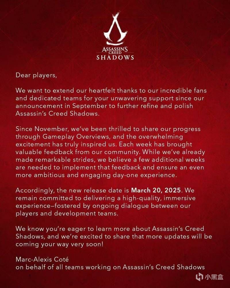 整體來說,《刺客信條:影》的再度跳票一方面說明了育碧內部目前的窘迫狀態,另一方面也讓期待這款遊戲的玩家捏了把汗。該系列很少有出現跳票多次的情況,要真的因爲性能優化 、玩法內容這些拉垮,那2025年或真的會是育碧官方自己宣發的一樣,會成爲《刺客信條:影》之年