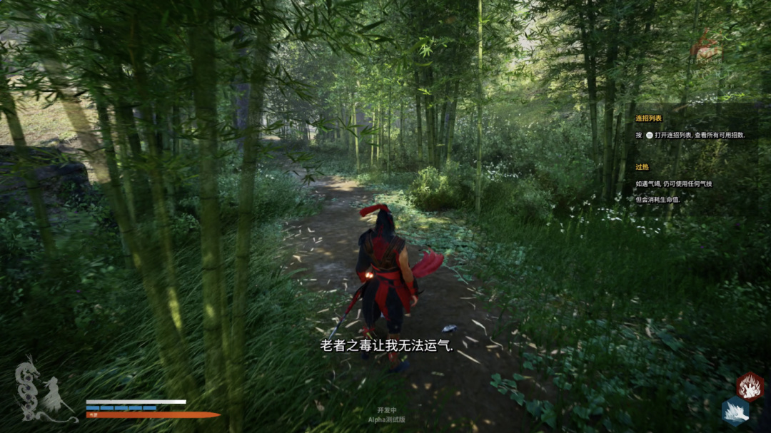 大概是被黑神话的销量给折服了,为了向强者学习, Demo 里添加了大量的空气墙,你只能在石头和竹林中间的空地上活动——当然,容易脚滑摔死的地方例外。