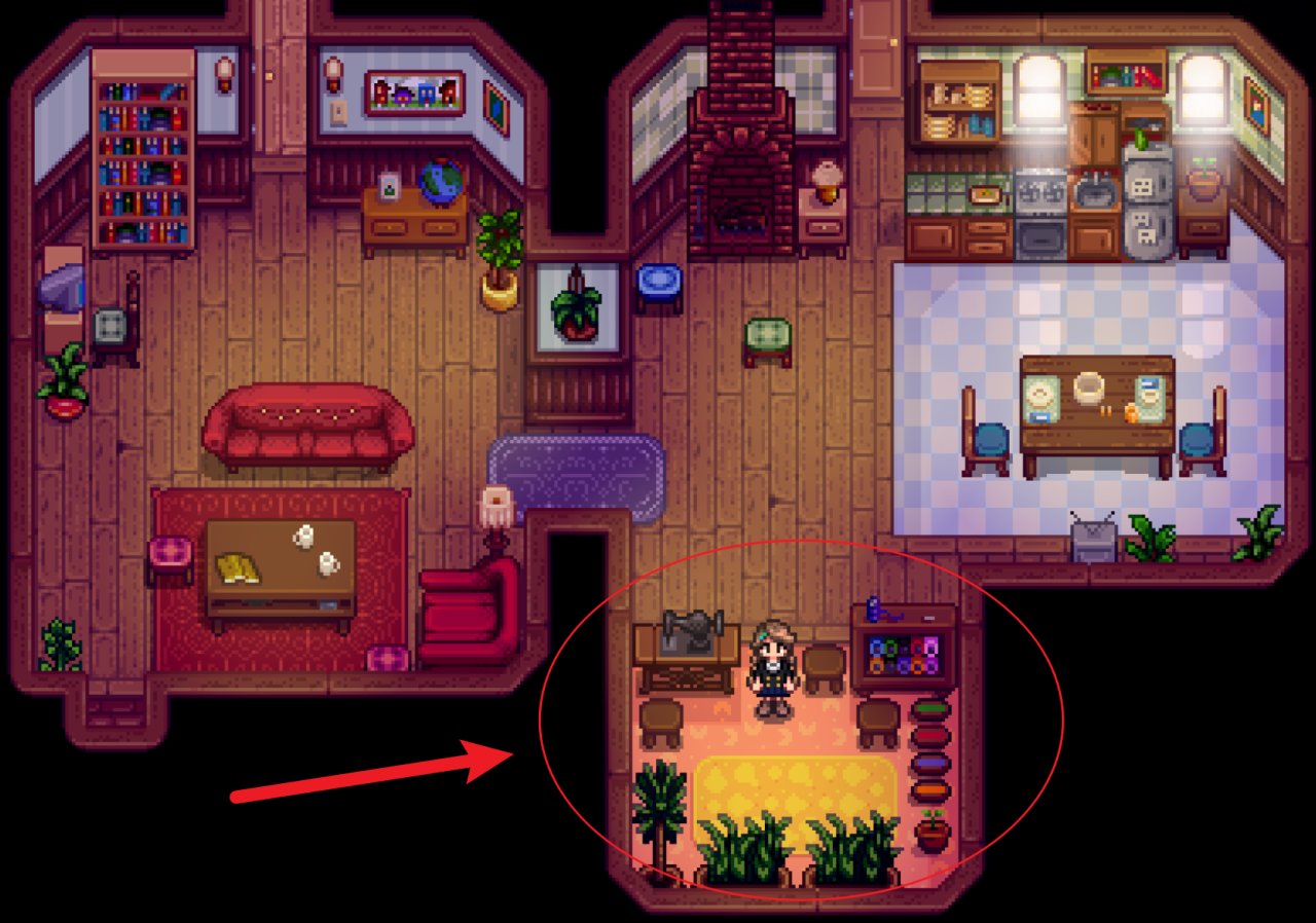 艾米麗會在玩家首次獲得布料的第二天早晨找上門(6到11點),告訴玩家可以使用她家的縫紉機制作衣服。