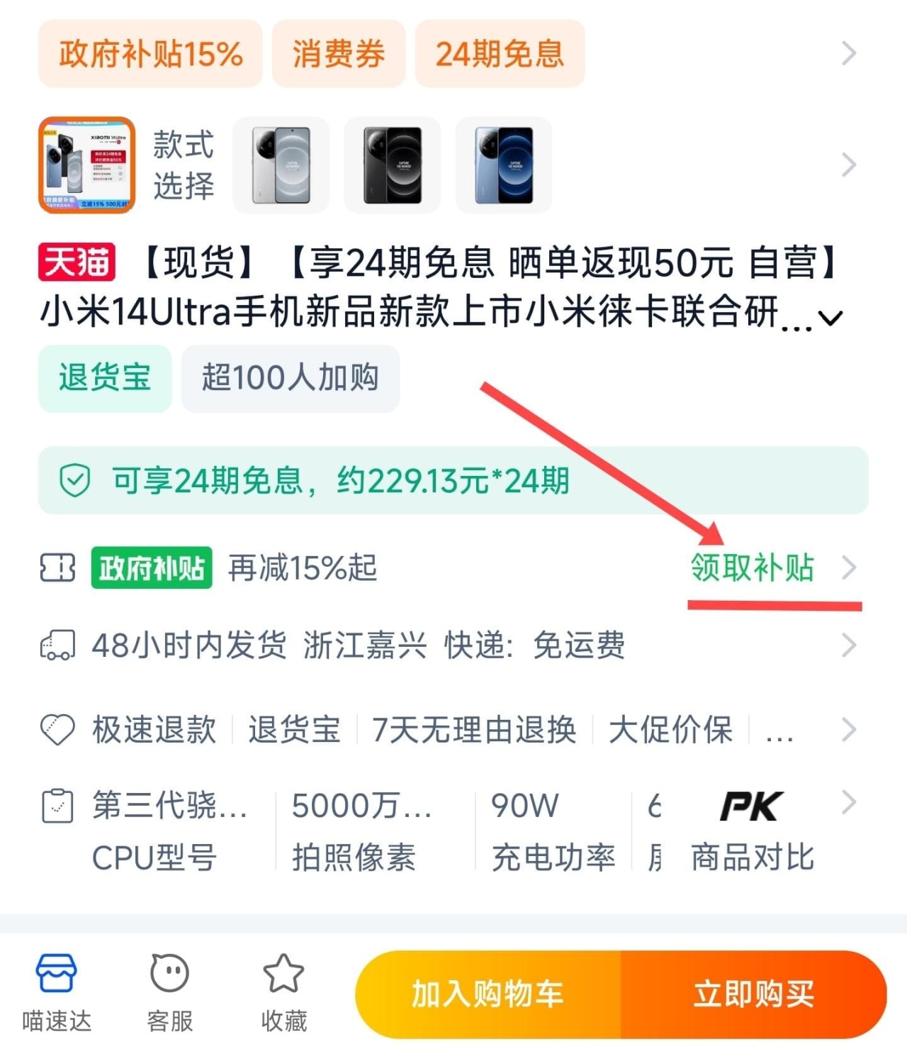 • 淘寶的話要用支付寶支付才能使用政府補貼