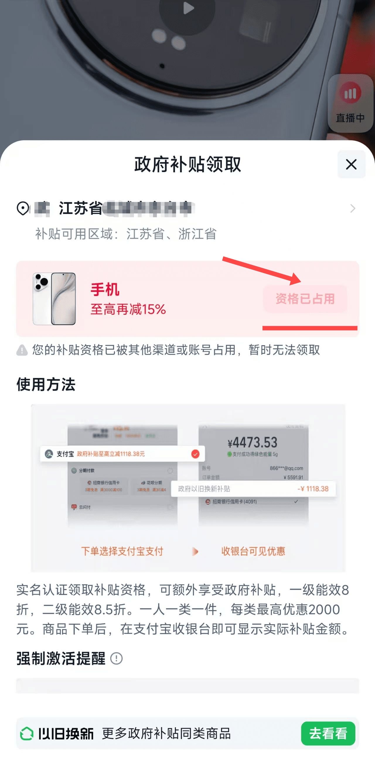 2、輸入支持補貼的地址,選擇品類,領取補貼