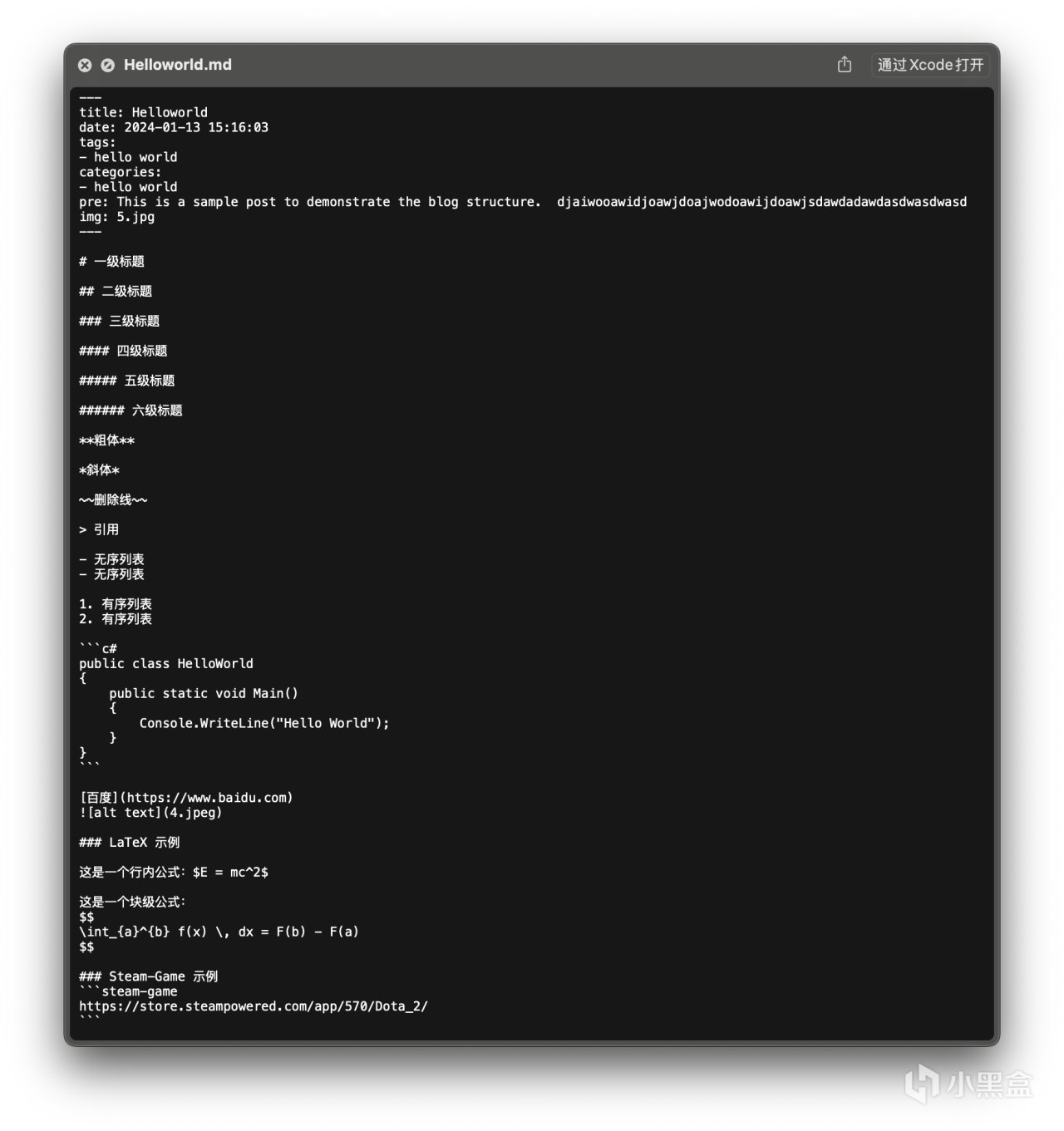 以下是一个对大部分语法的测试文档,从源文件到渲染文档: