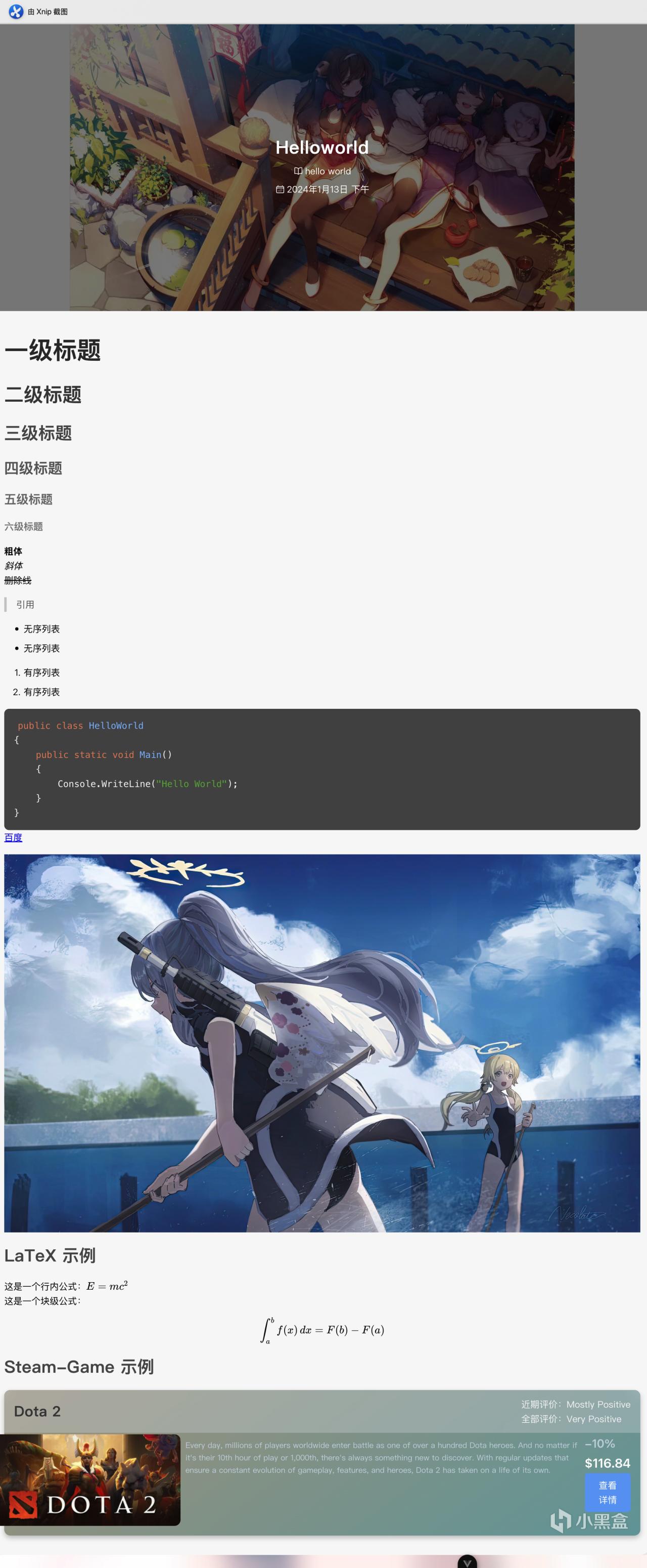 到了最关键的文章解析环节了,Markdown语法都被支持。新接入了对Latex的支持,而Mermaid将会在未来加入。